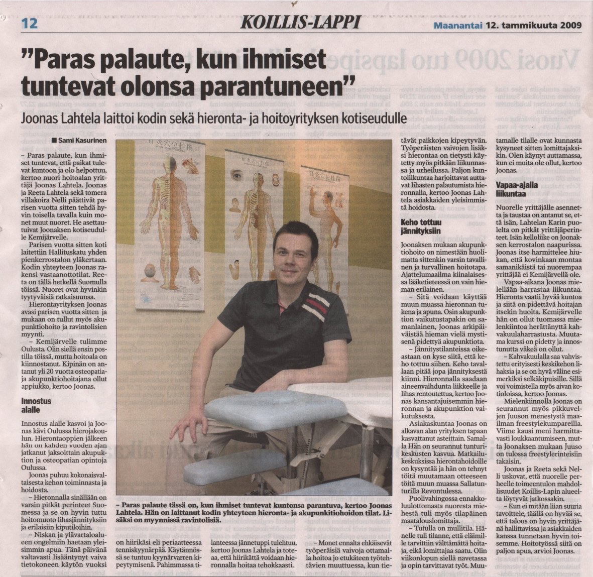 Lehtijuttu Koillis-Lappi 12.1.2009